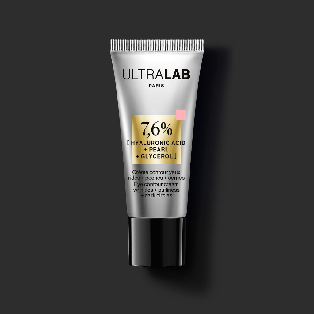 La crème contour des yeux rides + poches + cernes ULTRALAB est un soin ultra-efficace grâce à son complexe d’actifs concentré à 7.6% qui se compose de: