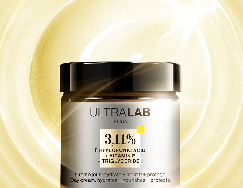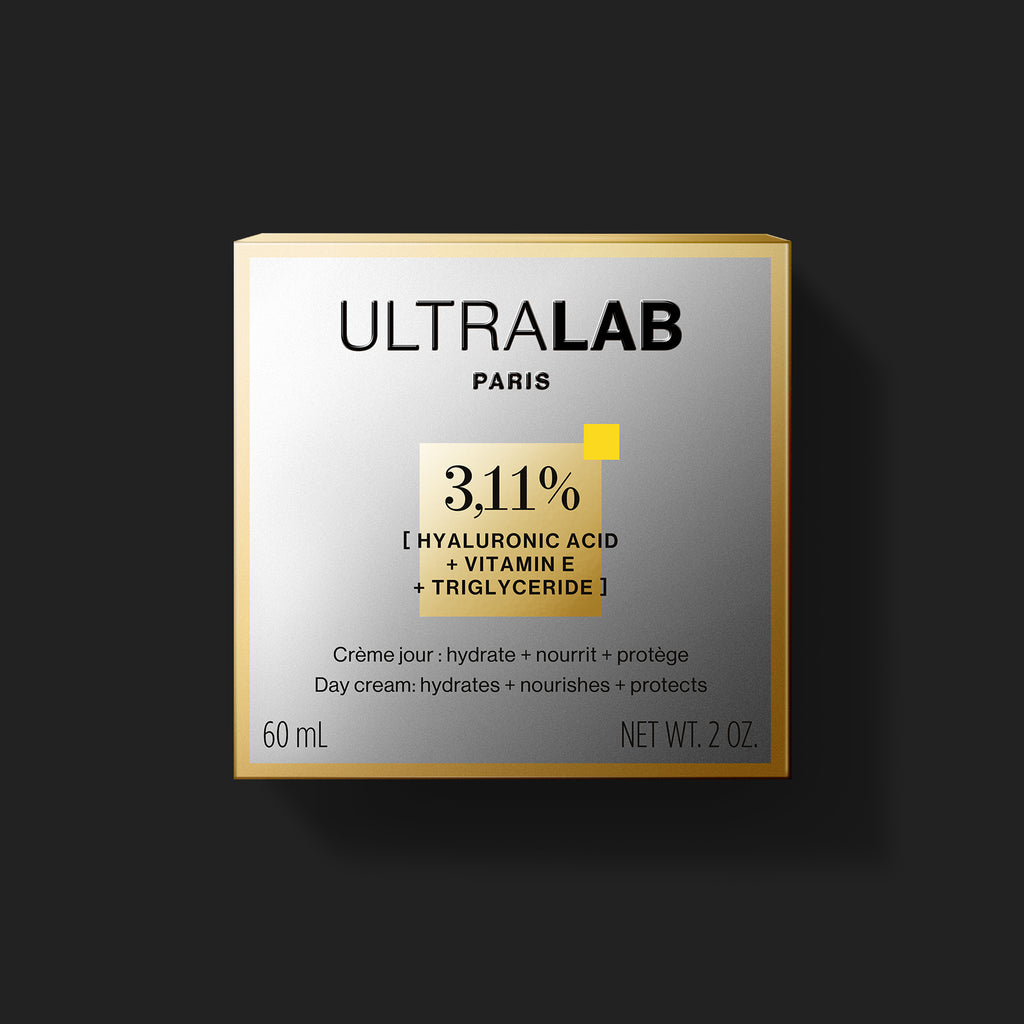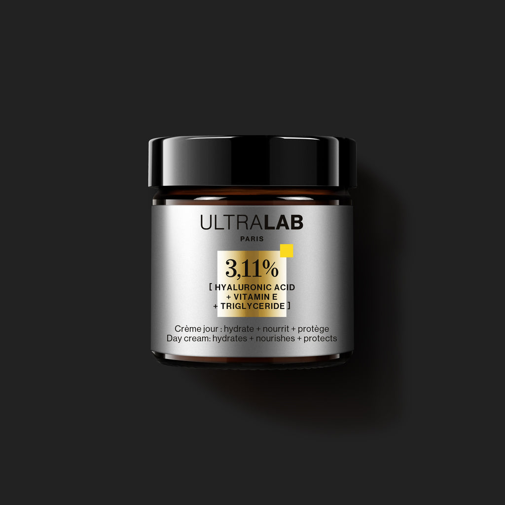 La crème jour ‘hydrate + nourrit + protège’ ULTRALAB est un soin ultra-efficace grâce à son complexe d’actifs concentré à 3.11% qui se compose de: